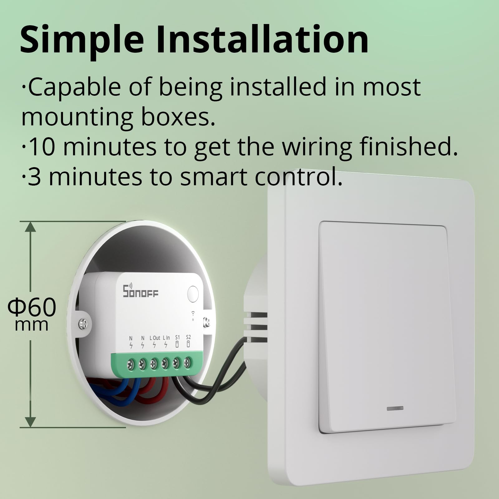 - 【Matter Compatible】SONOFF MINIR4M is a Matter-certified device, it can work with other brands of Matter end devices and integrate into Matter-enabled platforms, such as Alexa, Apple Home, Google Home, SmartThings,etc. Controlling all smart devices through one app is no longer a fantasy.